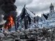 Thick plumes of black smoke can be seen billowing into the sky as flames engulfed the main stage.